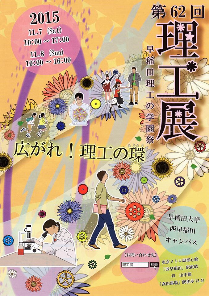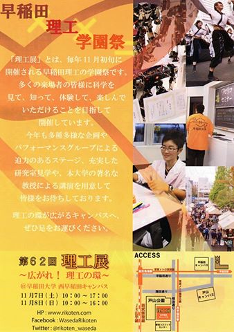 日時は早稲田祭と同じです。早稲田祭だけでなく、理工展にもお運びください。