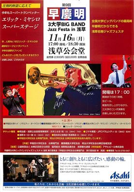 熱いご声援に応えてエリック・ミヤシロを3たびゲストに迎え、下町淺草の持っている素敵なジャズを、夢の舞台をお届けします。ご期待ください。